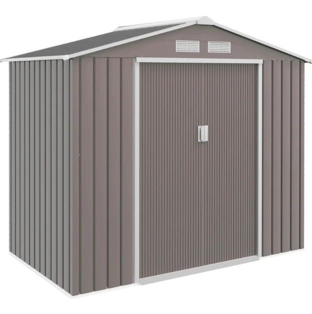 Keep your garden equipment and outdoor essentials locked away securely with this fantastic 185 x 127cm outdoor shed from Outsunny. Built from galvanised steel for enduring reliability, it is made with a lockable double sliding door on the front for easy access, four vents for air to circulate and prevent moisture build up, as well as a sloped roof so water doesn’t build up and stagnate. It’s finished with a protective weather coating and a floor foundation for it to stand level on the ground. The perfect home for all your outdoor tools and gear.